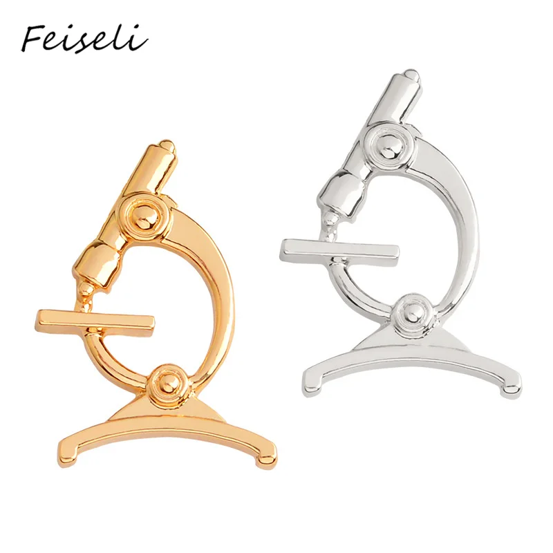 Deals Feiseli Creative Silver Gold Color Metal Microscope Brooch Medical Clothing Collar Corsage Pins Bag
