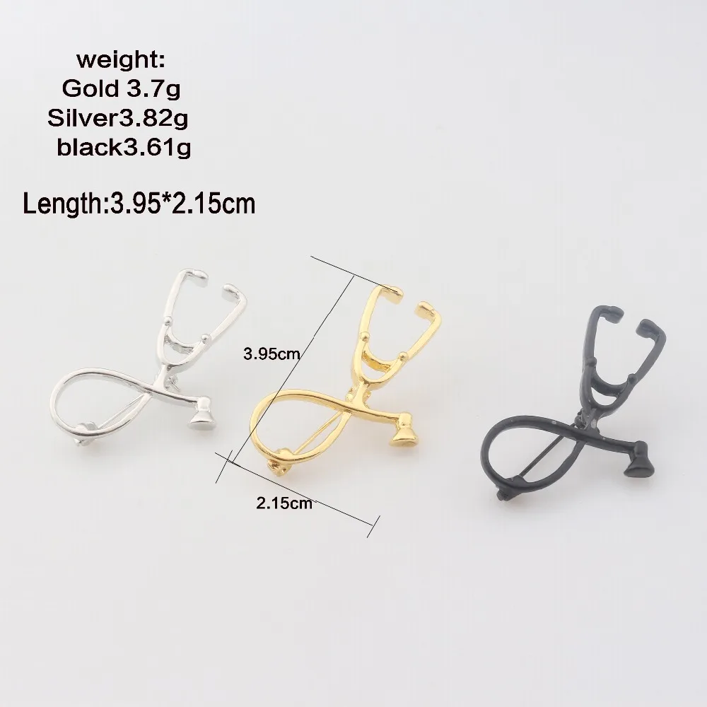 Order M2 Trendy Simple Design Gold&Silver&Black&Rose Gold Stethoscope Brooch Pins Nurse Doctors Medical S