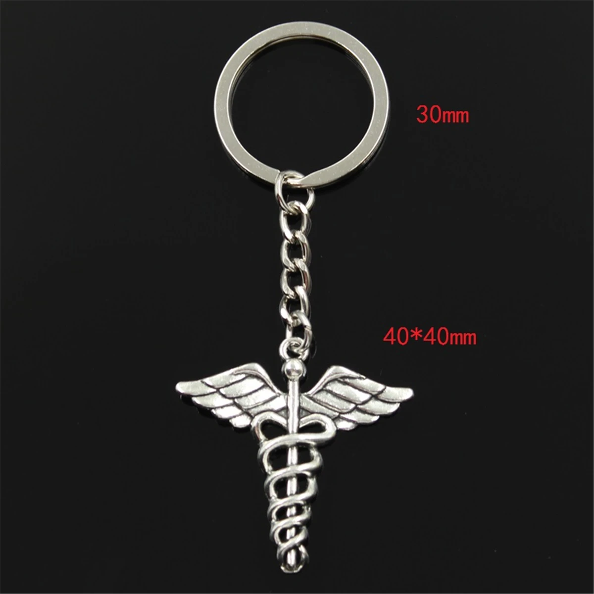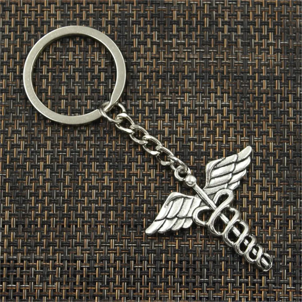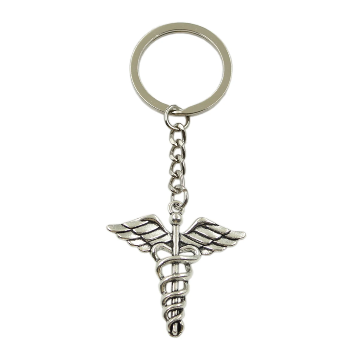Premium New Hot Men Key Ring Metal Key Chain Keychain Gift Jewelry Silver Bronze caduceus medical symbol Pe