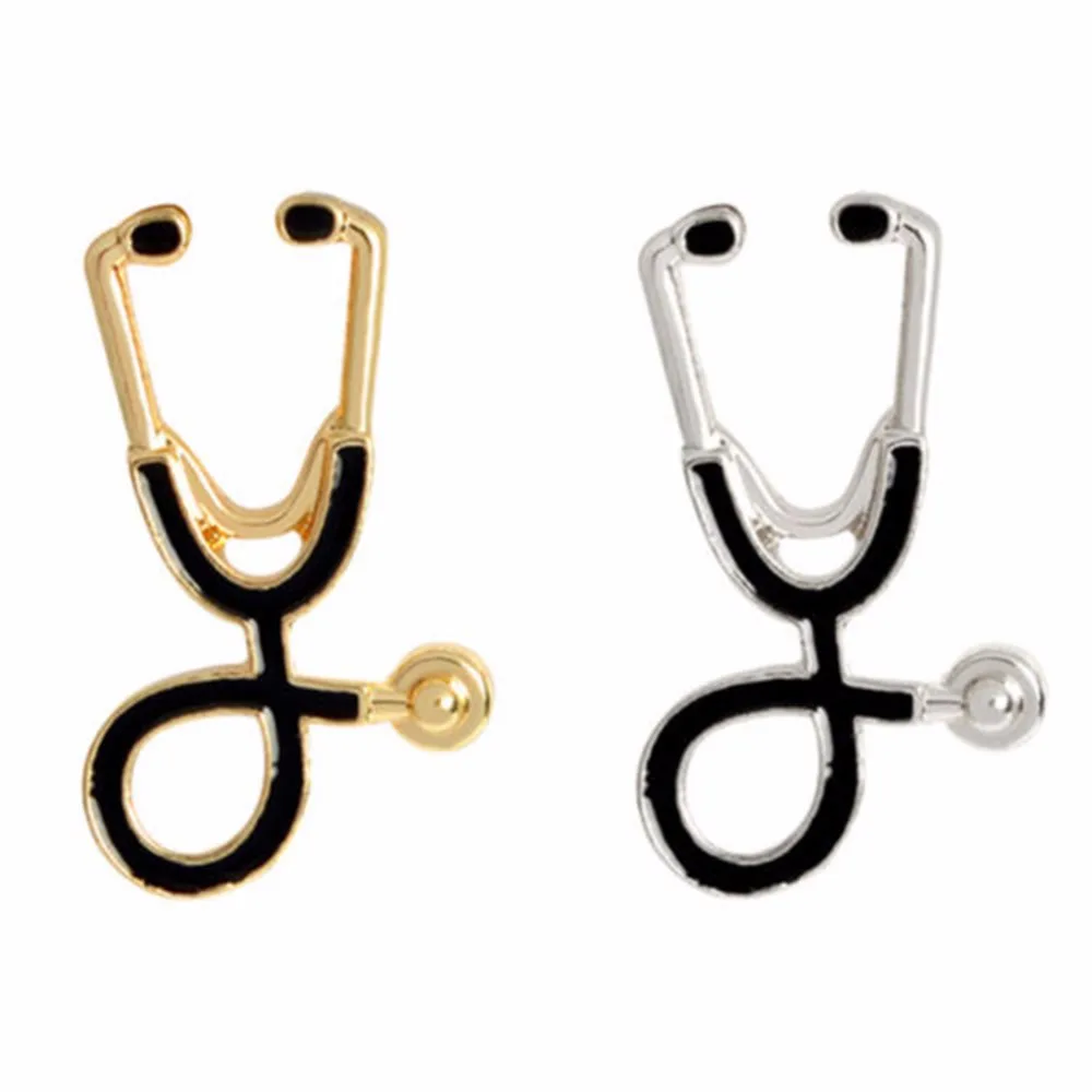 Promo New Vintage Brooches Gold Silver Personality Retro Stethoscope Cartoon Brooch Pin Nurse Jewelry Med