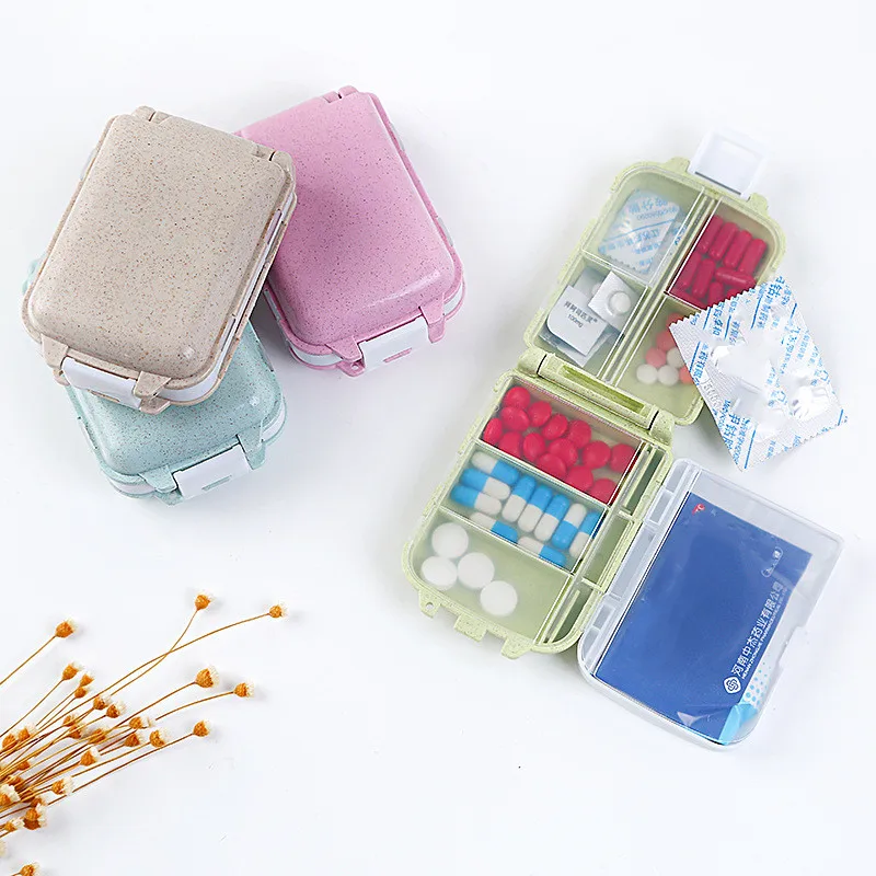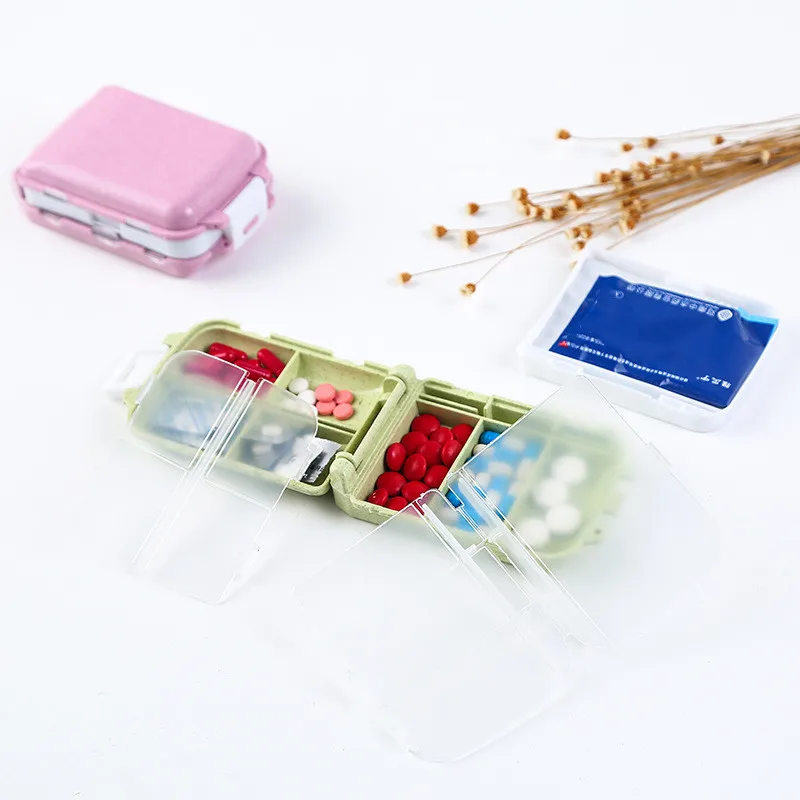 Clearance Wheat Straw Pill Storage Box Travel Portable Double-layer 7 Grid Pill Box Household Moisture-proof