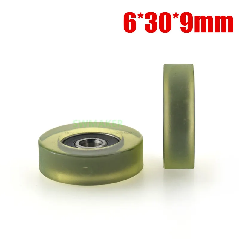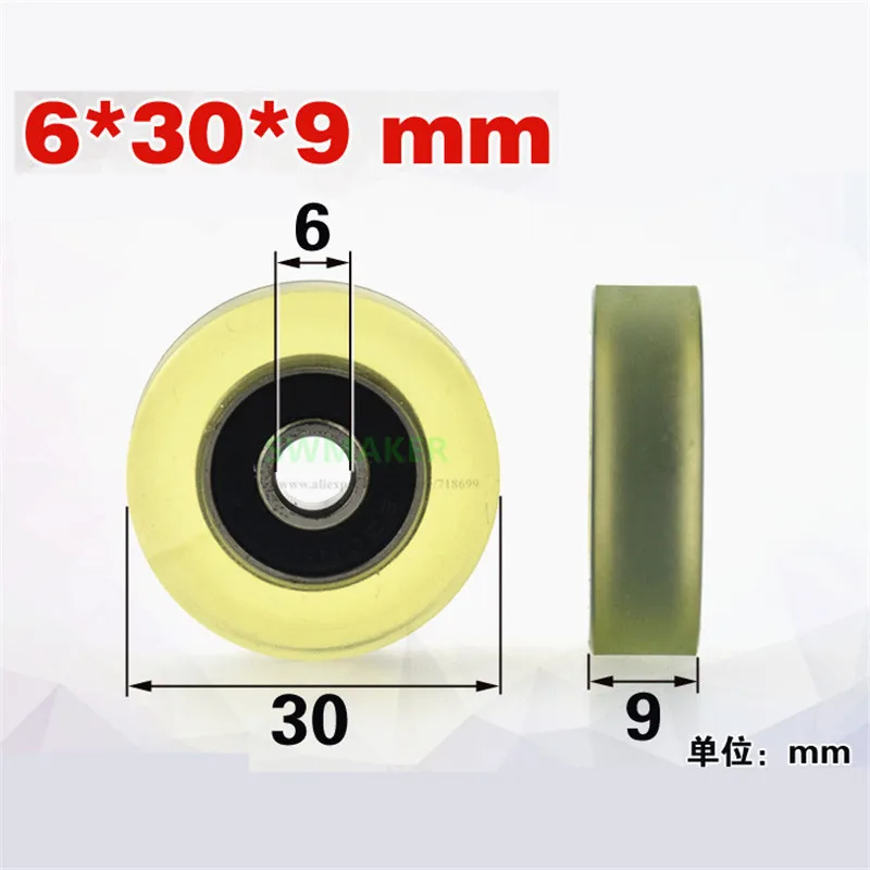On sale 1pcs 6*30*9mm polyurethane coated wheels wear resistant mute bearing pulley for drawer/precision in