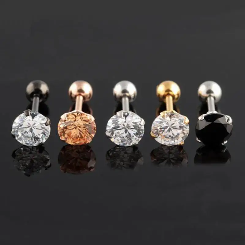 Affordable New Coming Medical Titanium Steel Allergy Earrings White Zircon Ear Bone Nail Stud Earrings For Uni